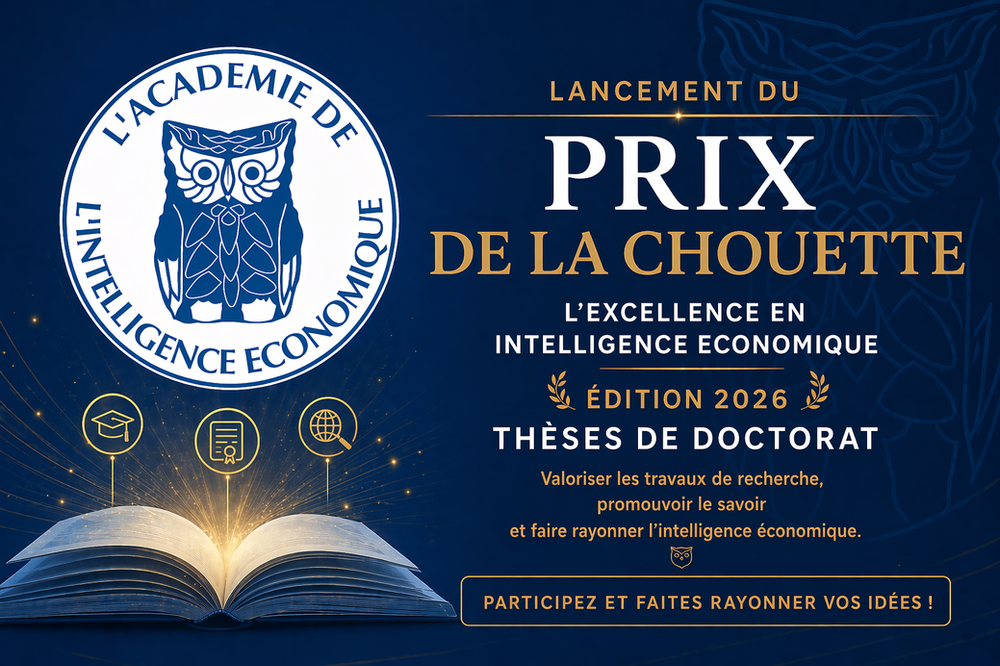 APPEL À CANDIDATURES — Édition 2026 INTRODUCTION Le Prix de la Chouette distinguera cette année les contributions les plus remarquables à la production intellectuelle en intelligence économique que sont les thèses de Doctorat universitaires de haut niveau. Héritière de la pensée de Robert Guillaumot, son fondateur, et de la doctrine formulée par le groupe du rapport d’Henri Martre en 1994, l’Académie de l’intelligence économique promeut une intelligence économique globale et incarnée, qui… Read More Académie de l’IE